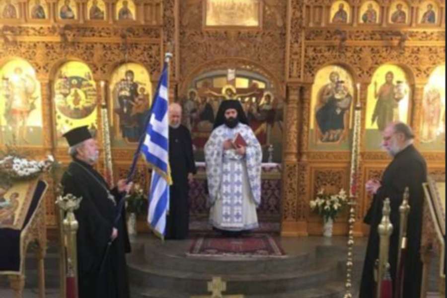 Επειδή, λόγω της πανδημίας, δεν μπόρεσαν τα ελληνικά σχολεία Μονάχου να παραστούν στη Δοξολογία με σημαίες, για το λόγο αυτό ανέλαβε ο Πρωτοπρεσβύτερος Απόστολος Μαλαμούσης να κρατήσει τη σημαία, ως ένδειξη ότι το φρόνημα της Εκκλησίας μας και της Παροικίας μας παραμένει αλώβητο από κάθε είδους πανδημίες και ορατούς και αοράτους εχθρούς.