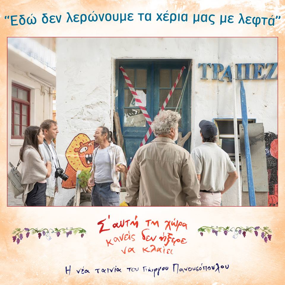 Oχι εννοείται στη νεαρή Ελληνίδα οικονομολόγο και τον Γάλλο ευρωβουλευτή, που έφθασαν με καΐκι στο αχαρτογράφητο Αρμενάκι κάπου στο Αιγαίο για να σταθμίσουν τις δυνατότητες του νησιού για μέλλουσες επενδύσεις, αλλά σε άπαντες τους κατοίκους του, που έχουν καταργήσει τράπεζες και συνεπώς χρηματικές συναλλαγές και ζουν σε μια εκτός χρόνου εντροπία.