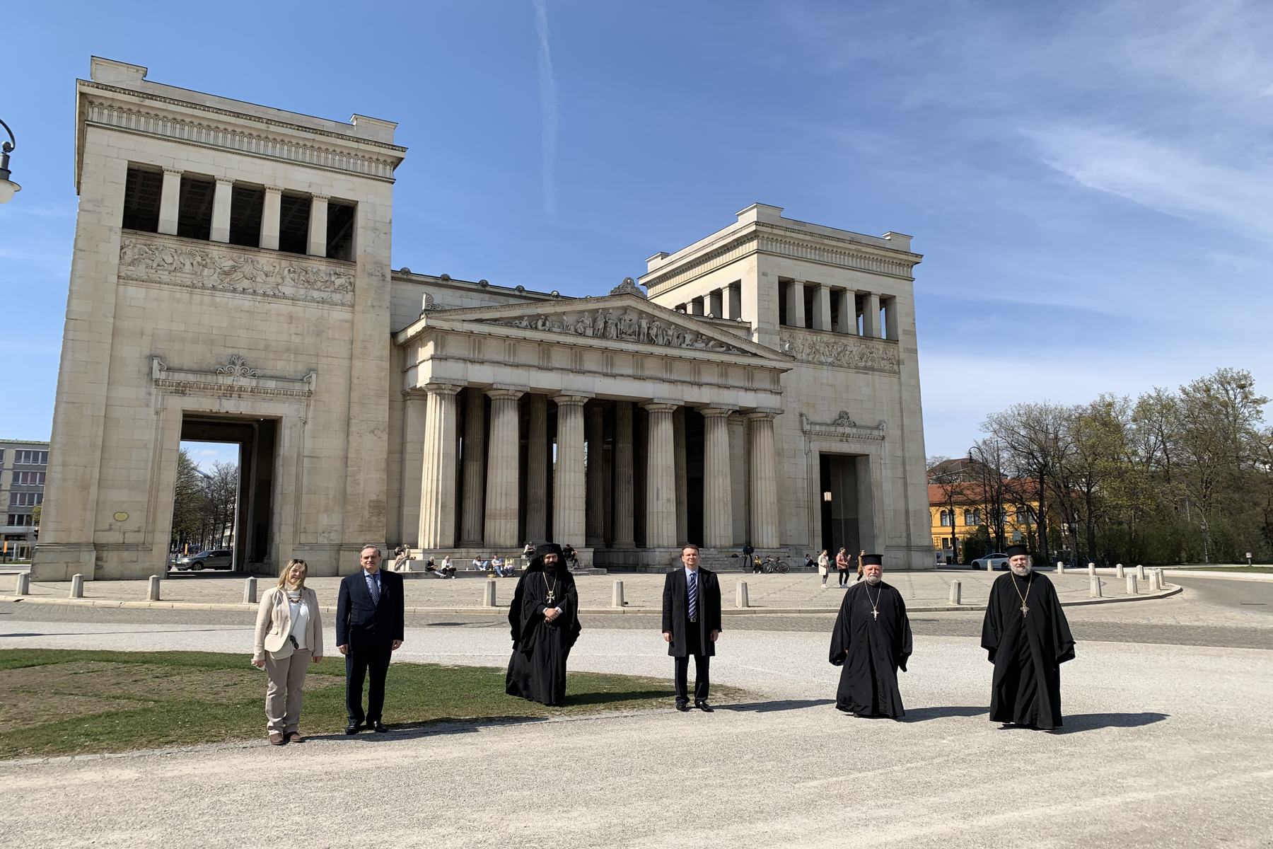 Στην τελετή παρέστησαν ο Γενικός Πρόξενος Μονάχου κ. Βασίλειος Γκουλούσης και η αρχαιολόγος-φιλόλογος κ. Μαρία Λιάνου. Λόγω των προστατευτικών μέτρων της Βαυαρικής Πολιτείας για την προστασία από τον κωρονοιό δεν κατέστη δυνατό να παραστούν περισσότερα μέλης της Παροικίας μας στην τελετή.