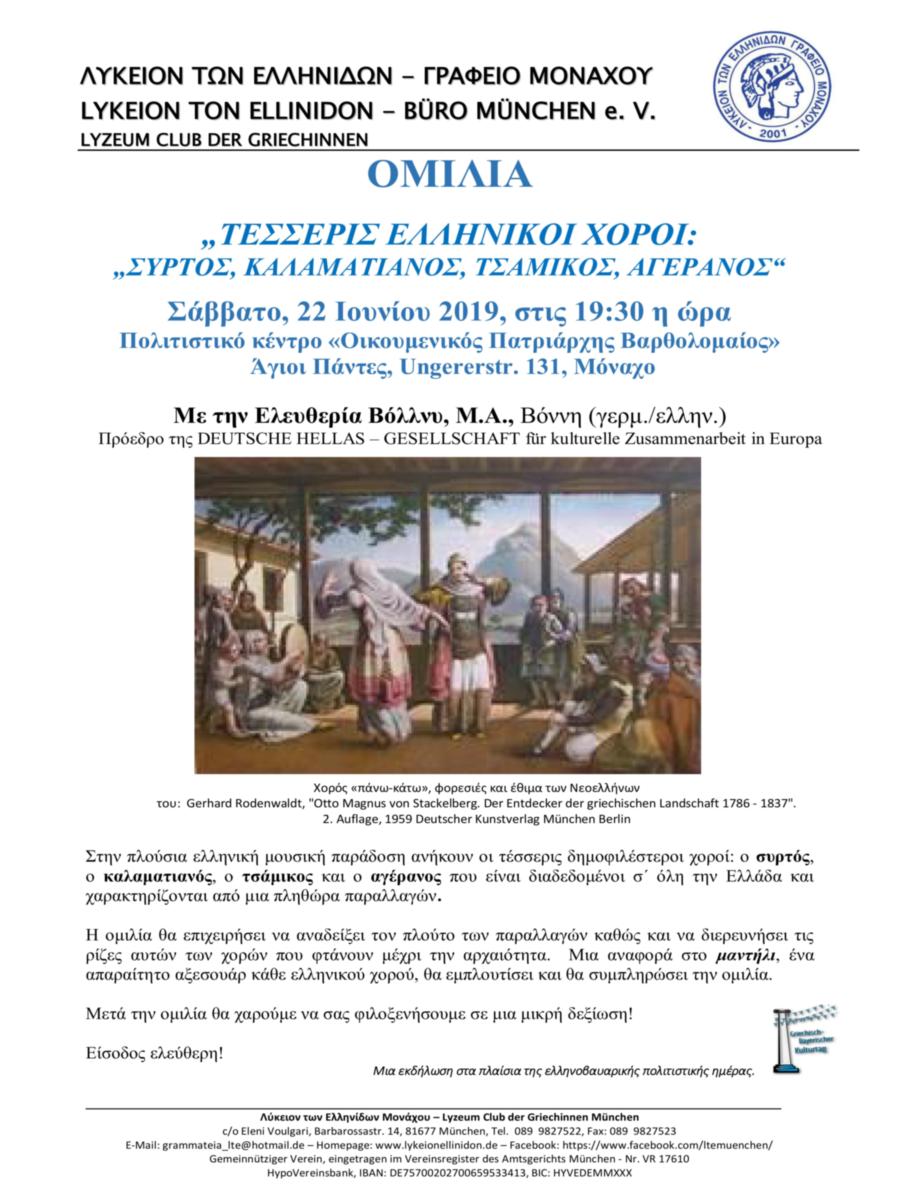 Ομιλία: “Τέσσερις Ελληνικοί Χοροί” “Συρτός – Καλαματιανός – Τσάμικος – Αγέρανος”
