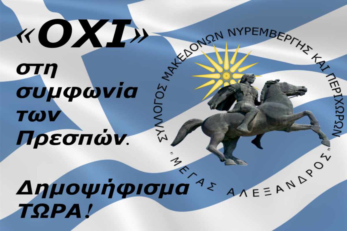 O Σύλλογος Μακεδόνων Νυρεμβέργης και περιχώρων «ΜΕΓΑΣ ΑΛΕΞΑΝΔΡΟΣ» πήρε μέρος την Κυριακή 30.01.2019 στη συγκέντρωση διαμαρτυρίας στο Μόναχο, λέγοντας „ΌXI στη συμφωνία των Πρεσπών“.