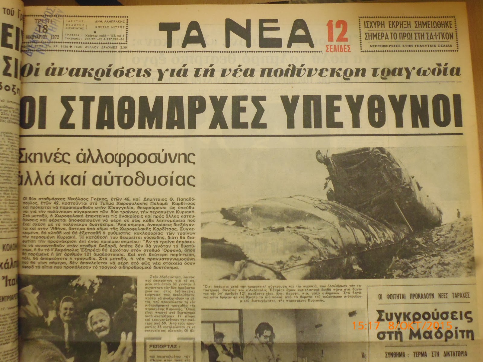 Το πολύνεκρο δυστύχημα στο Θεσσαλικό κάμπο δεν ήταν το πρώτο που γινόταν στα χρόνια της Χούντας. Είχε προηγηθεί η σιδηροδρομική τραγωδία στο Δερβένι το Σεπτέμβριο του 1968, όπου 34 άνθρωποι είχαν χάσει τη ζωή τους. Αυτή τη φορά, το καθεστώς των συνταγματαρχών κλήθηκε να λάβει μέτρα.