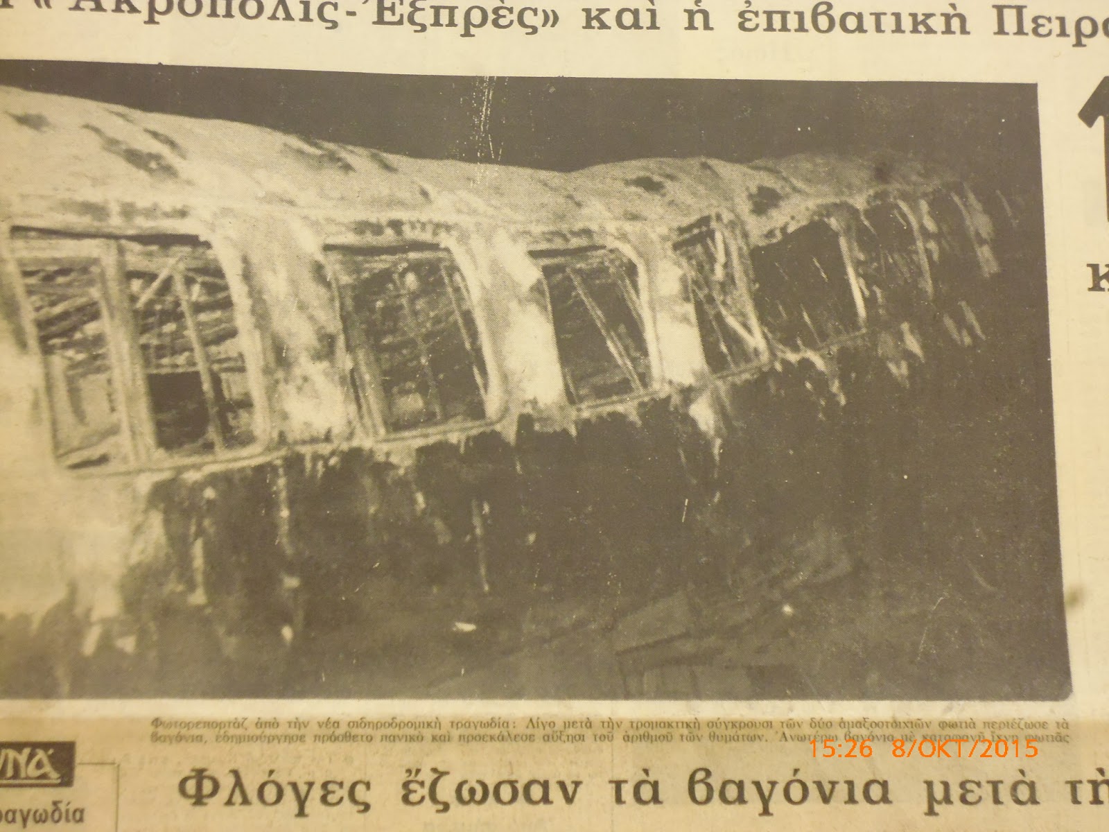 Όταν τα τρένα βρέθηκαν «πρόσωπο με πρόσωπο», ανάμεσα στους δύο σταθμούς, ήταν πολύ αργά. Το σκοτάδι, η κακοκαιρία και η ταχύτητα δεν άφησαν περιθώρια αντίδρασης. Η ντιζελομηχανή του «Ακρόπολις» συνέθλιψε τα τέσσερα μπροστινά βαγόνια της «πόστας»..