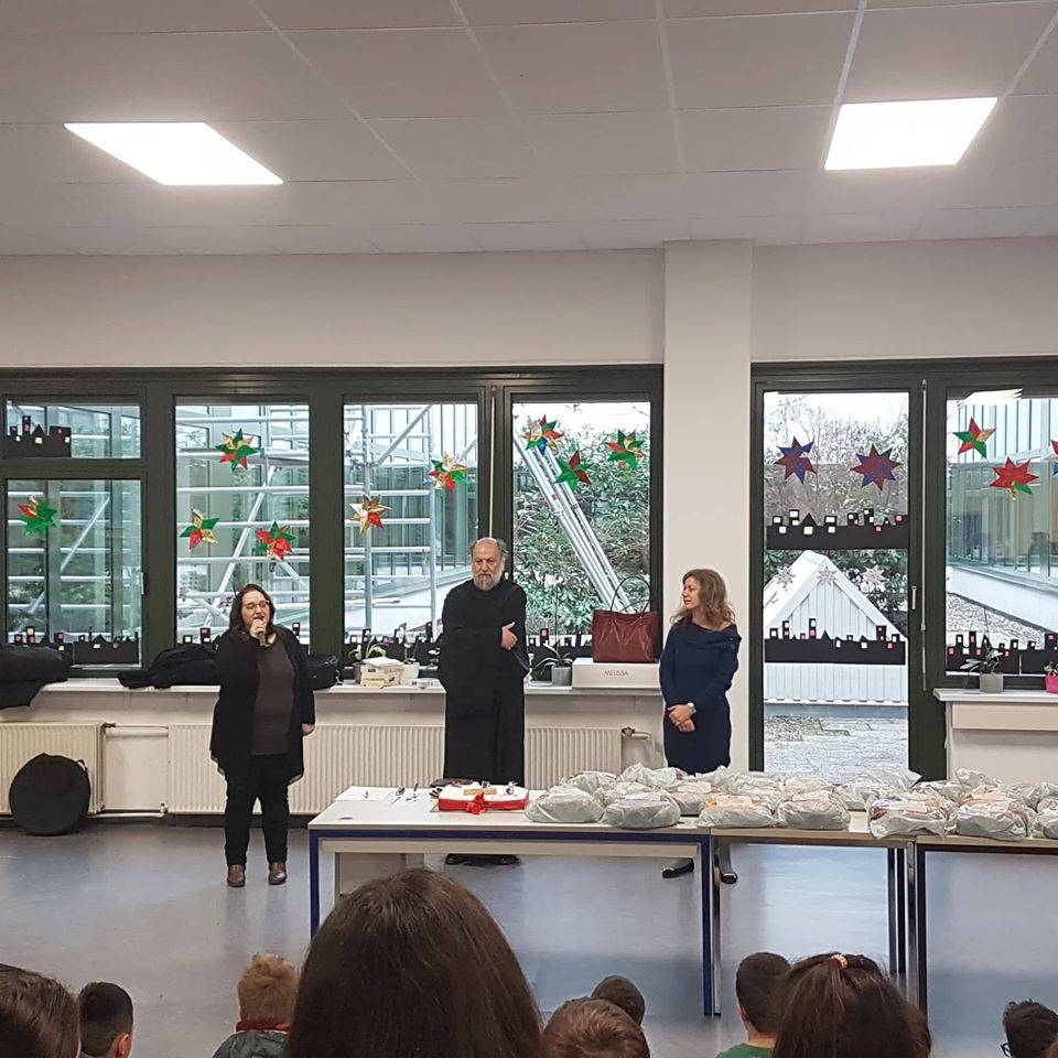 Την εορτή τίμησε με την παρουσία της η Γενική Πρόξενος της Ελλάδος στο Μόναχο, κ. Παναγιώτα Κωνσταντινοπούλου, και μοίρασε τις 26 βασιλόπιτες στα τμήματα των μαθητών που με μεγάλη ανυπομονησία περίμεναν να γευθούν και να βρουν το «φλουρί».