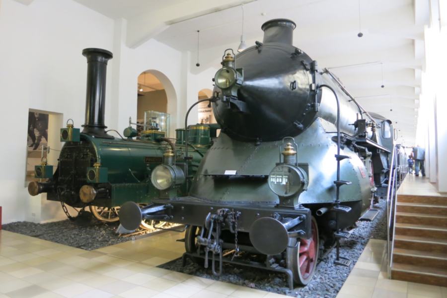 Φθάνοντας πια στην έξοδο του μουσείου, είδαμε το ακριβές αντίγραφο της πρώτης ατμομηχανής που εκτέλεσε δρομολόγιο στη Γερμανία το 1835. Νωρίτερα, είχαμε θαυμάσει δύο ζωγραφικούς πίνακες του ίδιου τραίνου, αντίγραφα των οποίων έχουμε δει αρκετές φορές σε δημόσια κτίρια στη Βαυαρία.